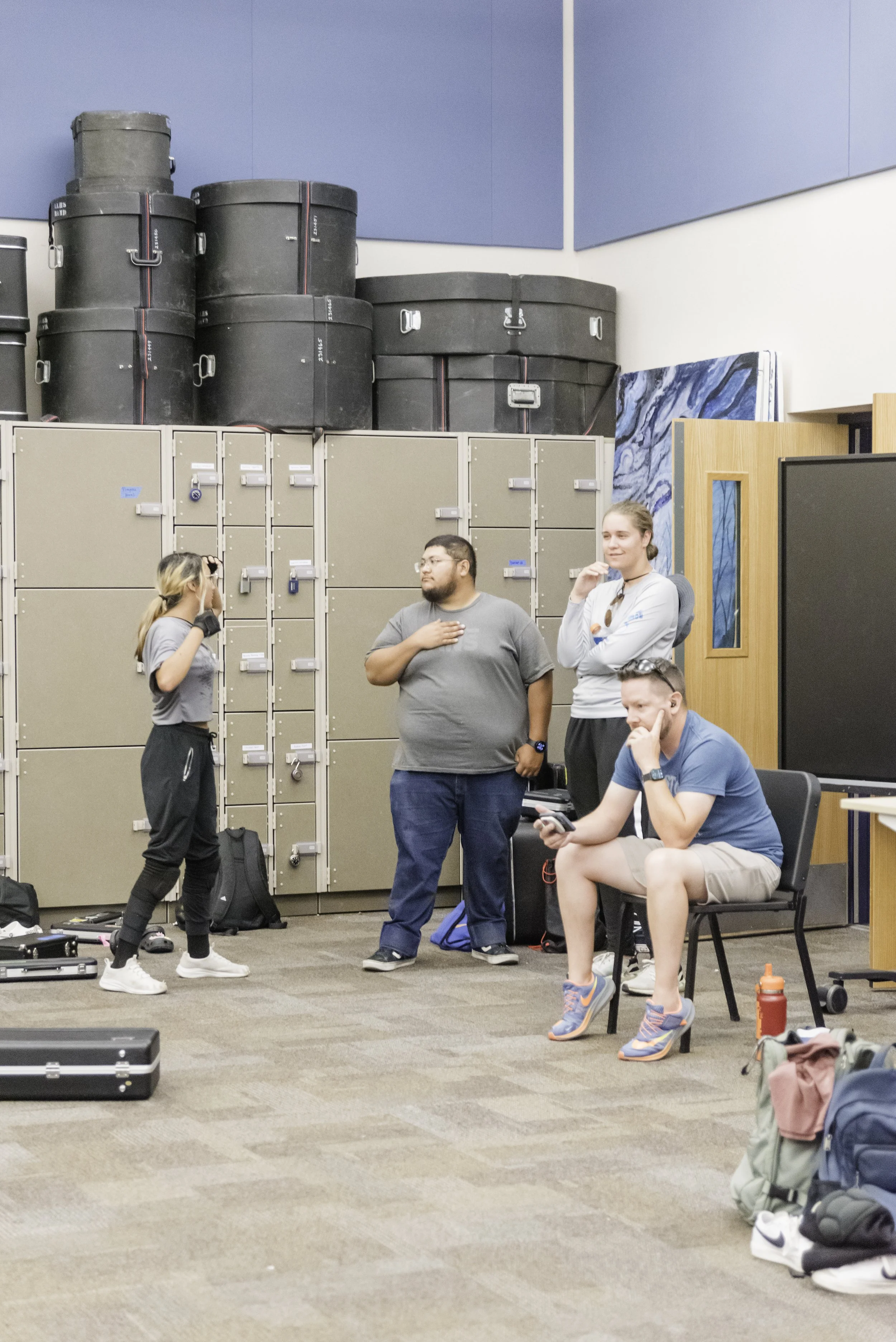 The Pit Crew is a team of adults who help students in the Front Ensemble enter and exit the performance field. They stage musical equipment, Drum Major stands, and props.